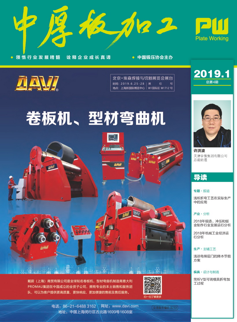《中厚板加工》2019年第1期《中厚板加工》(原名為厚板與鋼構)雜志是中國鍛壓協會主辦的面向厚度大于(或等于)6mm的金屬中板、中厚板、厚板、特厚板材加工,厚管加工,鋼結構成形行業的綜合性高端雜志。