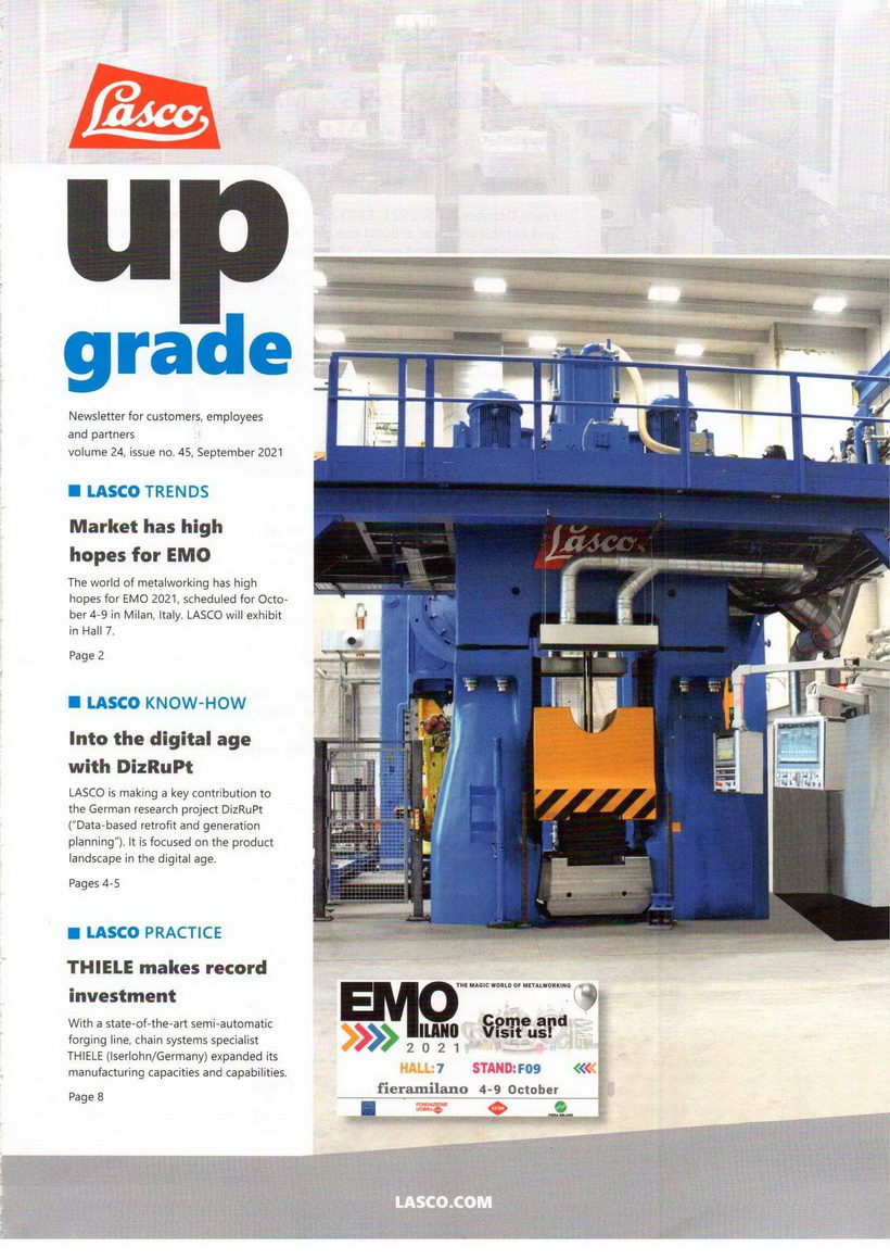 LASCO公司是液壓動力應用于鍛造行業的領頭兵,其生產的各種液壓機可以實現各種鍛造和沖壓成形。生產的電鐓設備已處于世界一流。