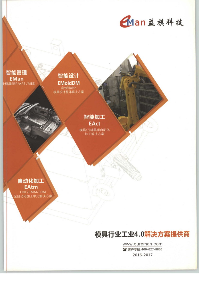 武漢益模科技股份有限公司是模具行業工業4.0解決方案提供商,為模具行業提供專業的智能設計、信息化管理、數字化工廠以及車間自動化等一系列實現工業4.0的解決方案,擁有麥格納、德爾福、海拉、薩克斯、一汽、上汽、北汽福田、格力、美的、康佳、比亞迪等數百家優質客戶,是西門子工業軟件全球首家模具ERP/MES集成合作伙伴,連續三屆獲得中國模具工業協會頒發的“優秀模具制造軟件供應商”獎項。益模科技是中國模具工業協會經營管理委員會副主任單位、湖北省模具行業協會副會長兼副秘書長單位,湖北省軟件行業協會理事單位,是東湖高新區重點支持的“3551光谷人才計劃”企業。益模科技是國家級高新技術企業,獲批國家“863計劃”和“國家創新基金”項目立項。曾榮獲“中國機械工業科學技術獎一等獎”、“湖北省科技進步一等獎”、“教育部科技進步二等獎”。公司目前主要產品包括EMan專業模具ERP/APS/MES; EMoldDM高效智能化模具設計整體解決方案;EAct模具輔具半自動化加工解決方案;EAtm CNC/CMM/EDM全自動化加工單元解決方案等產品及其技術服務。