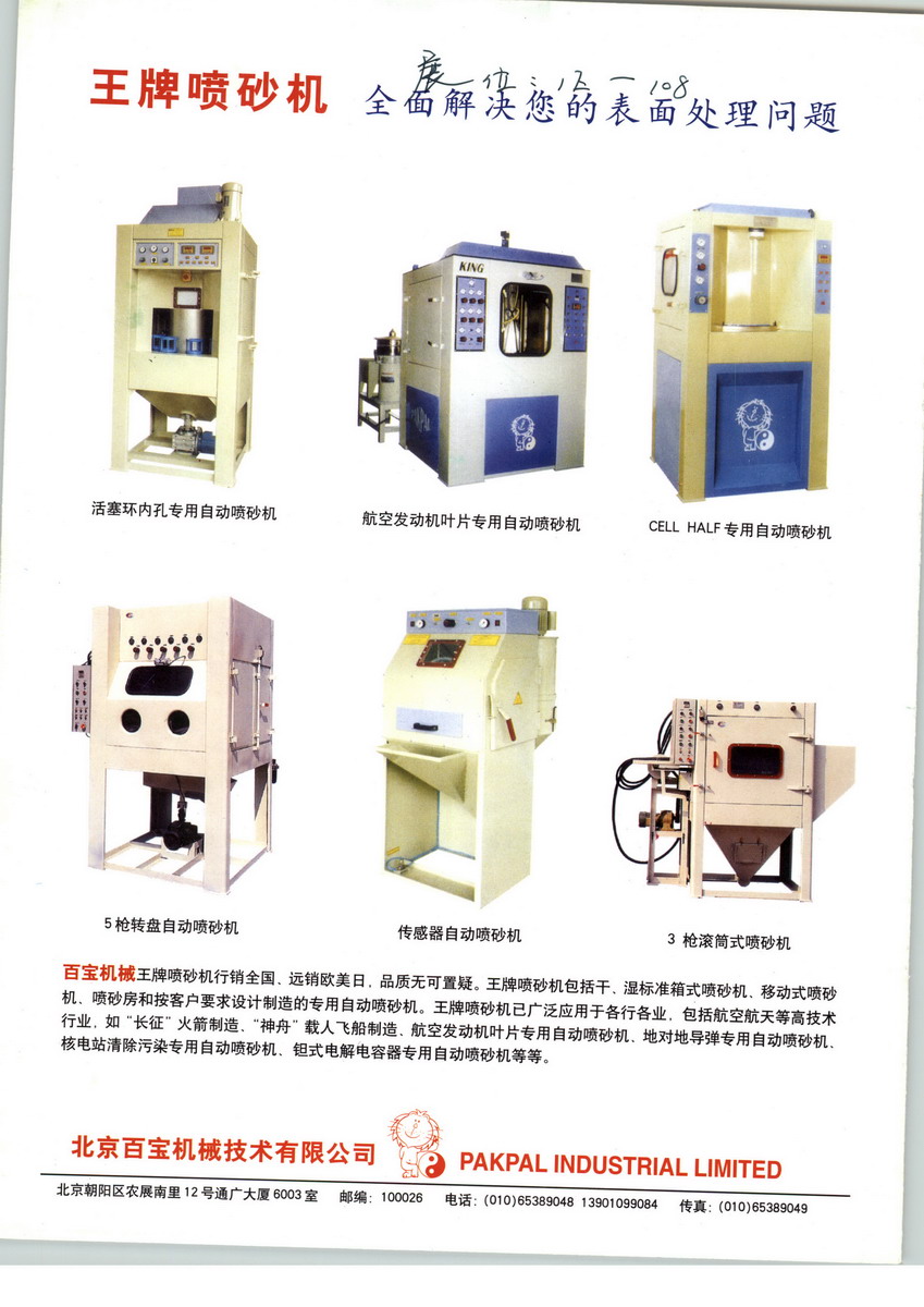 北京百寶機(jī)械技術(shù)有限公司主要經(jīng)營(yíng)標(biāo)準(zhǔn)型干、濕噴砂機(jī)/專用自動(dòng)干、濕噴砂機(jī)/空壓機(jī)及壓縮空氣干燥機(jī)、過濾器/壓縮空氣系統(tǒng)設(shè)計(jì)、工程、設(shè)備維修保養(yǎng)、備件供應(yīng)等專業(yè)服務(wù)。