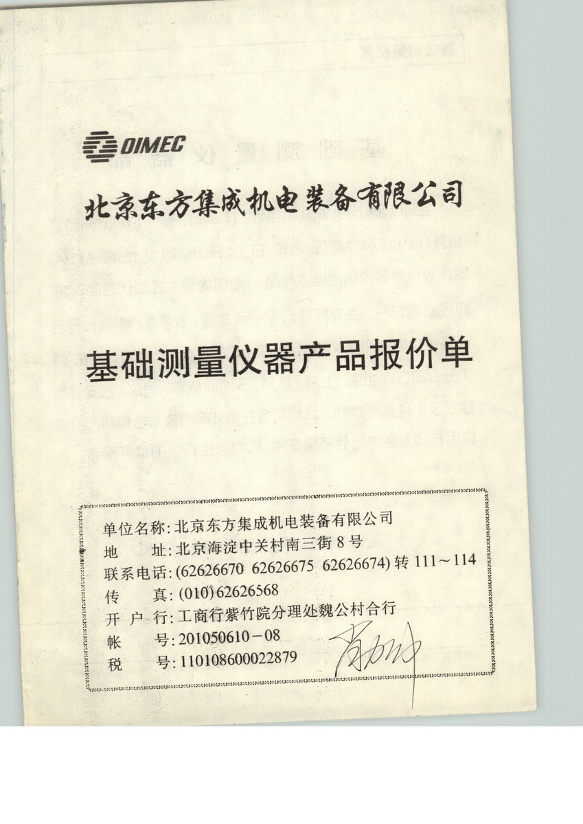 北京東方集成機電裝備有限公司(簡稱 OIMEC),是中國科學院東方科工貿集團的下屬企業之一。在集團多元化的業務中,OIMEC的主營業務方向是為電子、通訊、工業控制、半導體工業、石化工業領域提供廣泛的測試、測量儀器、儀表、工具和設備,同時為以上用戶提供生產線系統集成,通訊網絡集成和無線計算機網絡接入方案。 OIMEC目前年營業規模近2億元人民幣, 是FLUKE、HP、TEKTRONIX、WAVETEK、NICOLET、KENWOOD、MOTOROLA、GLENAYRE、RDC、GRE、TTC、AMETEK、HIOKI 等世界著名廠商的中國合作伙伴。
